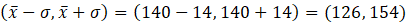 Wyznacz przedział określony przez odchylenie od średniej, czyli odejmij i dodaj do średniej wartość odchylenia.