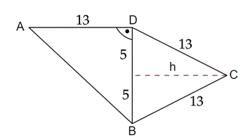 Zauważ, że czworokąt ABCD składa się z dwóch trójkątów: ABD i CBD. Więc aby obliczyć jego pole, możesz obliczyć pola tych trójkątów i je zsumować.