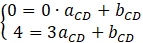 Zapisz równanie prostej CD. Wyznacz wartości współczynników