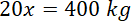 W roztworze wodnym o masie 400 kg stosunek masy substancji rozpuszczonej do masy wody jest równy 5 : 15. To znaczy, że 5x substancji rozpuszczonej i 15x wody tworzy 400 kg roztworu: