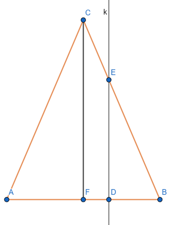 Zauważ, że wysokość CF dzieli prostokąt ABC na pół. Zapisz pola trójkątów AFC i BFC w zależności od