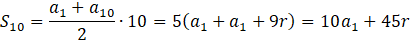Zapisz wzór na sumę 10 początkowych wyrazów ciągu za pomocą pierwszego wyrazu i różnicy.