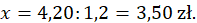 Rozwiąż równanie dzieląc obustronnie przez 1,2 i znajdź wartość x: