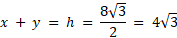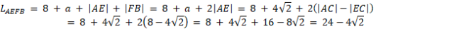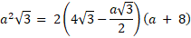 Trójkąt równoboczny o boku długości 8 został podzielony na dwie figury, trapez i mniejszy trójkąt równoboczny, poprzez przeprowadzenie odcinka równoległego do jednego z boków trójkąta. Pola obu powstałych figur są równe. Oblicz obwód każdej z tych figur.