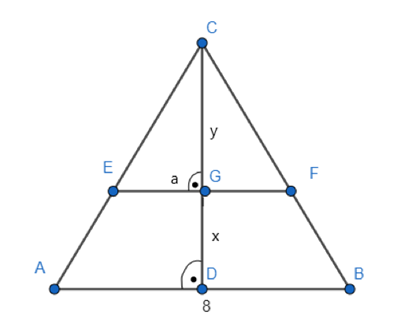 . Kolejno skorzystaj z wysokości trójkąta ABC i dojdź do równości