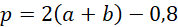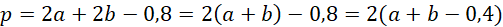 Wiemy, że dany pokój ma a metrów szerokości i b metrów długości, a jego drzwi mają szerokość 80 cm. Długość listwy podłogowej p jest zatem równa: