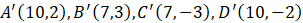Wierzchołki C i D to obrazy punktów odpowiednio B i A w symetrii względem osi OX, zatem ich współrzędne to