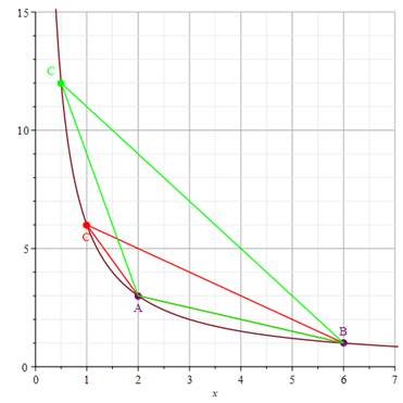 W tym zadaniu musisz wyznaczyć punkt, dla którego pole trójkąta będzie najmniejsze.