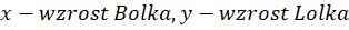 W tym zadaniu musisz podać wzrost Bolka, jeżeli średnia arytmetyczna ich wzrostu wynosi 155 cm. Ponadto wiadomo, że po podzieleniu wzrostu Bolka przez wzrost Lolka otrzymano resztę 10 cm oraz wiadomo, że chłopcy mają mniej niż 200 cm wzrostu i więcej niż 100 cm wzrostu.