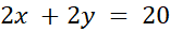 Obwód prostokąta to podwojony bok pierwszy w sumie z podwojonym bokiem drugim. Z tego warunku wyznaczamy bok x w zależności od boku y i tworzymy funkcję pola jako iloczyn boku x z bokiem y w reprezentacji uzależnionej od boku x – otrzymujemy funkcję kwadratową o ujemnym współczynniku kierunkowym, więc jej maksimum, będzie w wierzchołku paraboli. Bok y wyliczamy z warunku początkowego. Dodatkowo sprawdzamy, czy otrzymany wynik wierzchołka zawiera się w dziedzinie, którą wyznaczamy logiczno-empirycznym schematem – każdy bok prostokąta nie może być ujemny.