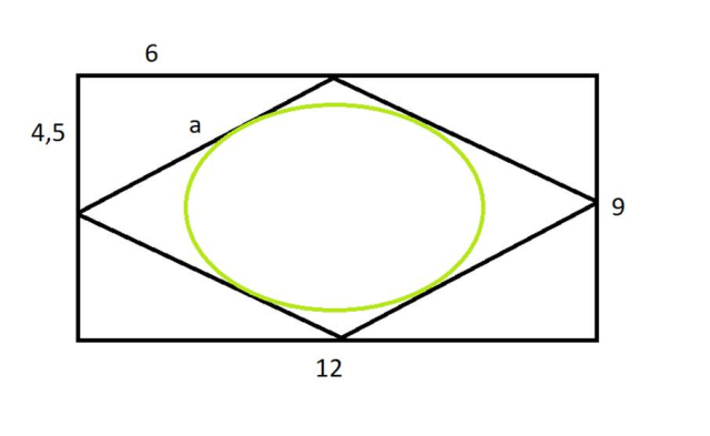 Wiedząc, iż w prostokącie o bokach długości 12 i 9 połączono środki boków, podaj miarę promienia okręgu, wpisanego w tak skonstruowany romb.