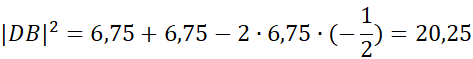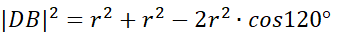 Następnie oblicz długość cięciwy DB z twierdzenia cosinusów.