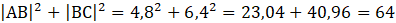 Długości boków trójkąta ABC są podane: |AB| = 4,8 cm, |BC| = 6,4 cm oraz |AC| = 8 cm. Udowodnij, że trójkąt ABC jest prostokątny.