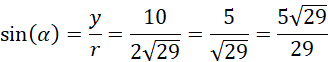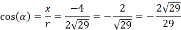 Najpierw zauważ, że bok AB pokrywa się z ramieniem początkowym kąta BAC, a bok AC stanowi ramię końcowe tego kąta. Następnie oblicz odległość tego punktu od początku układu współrzędnych, korzystając z twierdzenia Pitagorasa w trójkącie prostokątnym, w którym współrzędne punktu odpowiadają długościom przyprostokątnych. Następnie wyznacz wartości funkcji trygonometrycznych, korzystając z zależności: