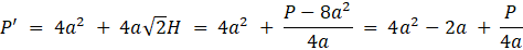 W graniastosłupie prawidłowym czworokątnym, którego objętość wynosi V a pole powierzchni wynosi P został wycięty mniejszy graniastosłup, którego wierzchołki leżą na środkach krawędzi podstaw większego graniastosłupa. Sprawdź, czy mając dane P można wyznaczyć P’.
