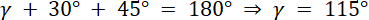 Narysuj rysunek pomocniczy. Oblicz miary kątów tego trójkąta korzystając z twierdzenia sinusów oraz z własności sumy kątów w trójkącie. Następnie zastosuj twierdzenie cosinusów i wyznacz długość boku c.