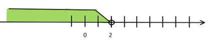 Rozwiązaniem nierówności są liczby mniejsze od 2, bez 2. Zatem na osi liczbowej należy zaznaczyć przedział liczbowy od nieskończoności do 2. Nierówność jest słaba, zatem kółeczko będzie otwarte.