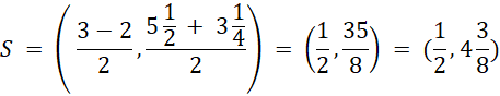 Należy wyznaczyć punkt S, wiemy, że jest on środkiem odcinka AB, możemy dzięki temu skorzystać ze wzoru na współrzędne środka odcinka: