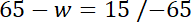 Aby obliczyć w, musisz pozbyć się wyrażeń stojących po jego stronie równania. Odejmij obustronnie 65, ponieważ odejmowanie jest działaniem przeciwnym do dodawania. Następnie pomnóż równanie przez -1, aby pozbyć się minusa przy w.