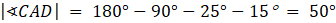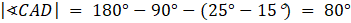 Dany jest okrąg o środku w punkcie O. Wyznaczono na nim punkty A, B, C, D. Odcinek AC jest jego średnicą, |∢ ADB | = 25° oraz |∢ BDC | = 15°. Podaj miarę kąta CAD, weź pod uwagę dwie możliwości.