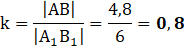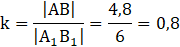 Długości boków trójkąta ABC są podane: |AB| = 4,8 cm, |BC| = 6,4 cm oraz |AC| = 8 cm. Wyznacz skalę podobieństwa.