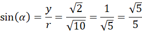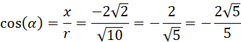 Najpierw zauważ, że bok AB pokrywa się z ramieniem początkowym kąta BAC, a bok AC stanowi ramię końcowe tego kąta. Następnie oblicz odległość tego punktu od początku układu współrzędnych, korzystając z twierdzenia Pitagorasa w trójkącie prostokątnym, w którym współrzędne punktu odpowiadają długościom przyprostokątnych. Następnie wyznacz wartości funkcji trygonometrycznych, korzystając z zależności: