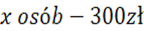 Jako x należ oznaczyć liczbę osób, która wzięła udział w wycieczce, jeśli koszt przejazdu na jedną osobę wynosił 18,75 zł, wiedząc ponadto, że koszt wynajęcia jest stały i wynosi 300 zł. Korzystając z proporcji, tworzymy i rozwiązujemy równanie, otrzymując x.