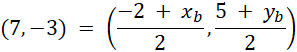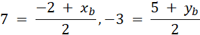 Należy wyznaczyć punkt B. Wiemy, że punkt S jest środkiem odcinka AB, możemy dzięki temu skorzystać ze wzoru na współrzędne środka odcinka:
