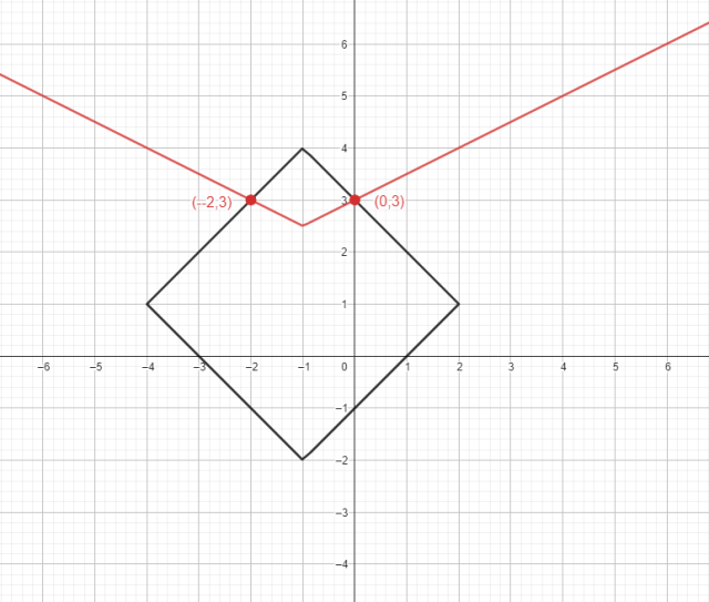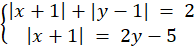 Dla każdego z równań wchodzącego w skład układu: rozpatrz dwa przypadki wartości bezwzględnej i stwórz szkic powstałych w ten sposób prostych. Finalnie nanieś otrzymane w obu przypadkach wykresy do jednego układu. Rozwiązania układu to punkt przecięcia tych wykresów.