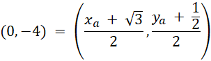 Należy wyznaczyć punkt A. Wiemy, że punkt S jest środkiem odcinka AB, możemy dzięki temu skorzystać ze wzoru na współrzędne środka odcinka: