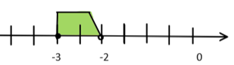 Rozwiązaniem nierówności są liczby większe od - 3, ale mniejsze od - 2. Zatem na osi liczbowej należy zaznaczyć przedział liczbowy od - 3 do - 2. Warto zaznaczyć, że jedna z nierówności jest słaba, więc kółeczko będzie otwarte, a druga nierówność jest ostra, zatem kółeczko będzie zamknięte.