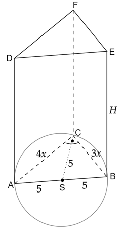 Oblicz wysokość graniastosłupa, korzystając z tego, że pole ściany bocznej BEFC o wymiarach