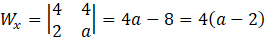 Do rozwiązania zadania posłuż się metodą wyznaczników.Oblicz wszystkie wyznaczniki układu równań, w zależności od parametru a.