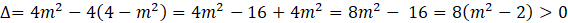 W tym zadaniu musisz znaleźć wszystkie wartości parametru m, dla których równanie x2 – 2mx + 4 – m2 = 0 ma dwa rozwiązania, które spełniają nierówność |x1| + |x2|