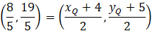 Zauważ, że obliczone współrzędne są środkiem odcinka QP.
