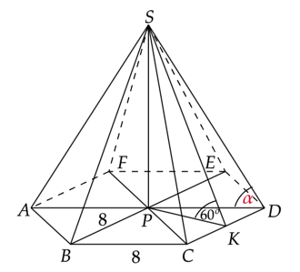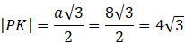 Zauważ, że podstawa ostrosłupa składa się z 6 identycznych trójkątów równobocznych, a odcinek PK jest jedną z wysokości takiego trójkąta o boku długości 8. Oblicz ją.