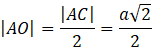 oraz długość odcinka AO, czyli połowy przekątnej podstawy.