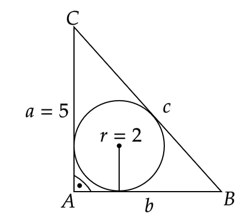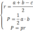 Skorzystaj ze wzoru na promień okręgu wpisanego w trójkąt prostokątny, pola trójkąta prostokątnego oraz pola z połową obwodu i promieniem. Zauważ, że powstał układ trzech równań z trzema niewiadomymi.