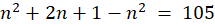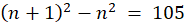 Dwie kolejne liczby naturalne to liczby n i n + 1. Różnica ich kwadratów ma być równa 105. Zapisz odpowiednie równanie. Wymnóż nawiasy, korzystając ze wzorów skróconego mnożenia i zredukuj wyrazy podobne. Rozwiąż równanie i wyznacz obie liczby.