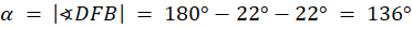 Wyznacz wartość α (rysunek), wiedząc, że kąt ostry zawarty pomiędzy przekątnymi prostokątnej kartki wynosi 44°.