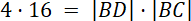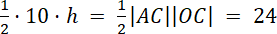W trójkącie prostokątnym AOC można wyliczyć wysokość porównując pola: