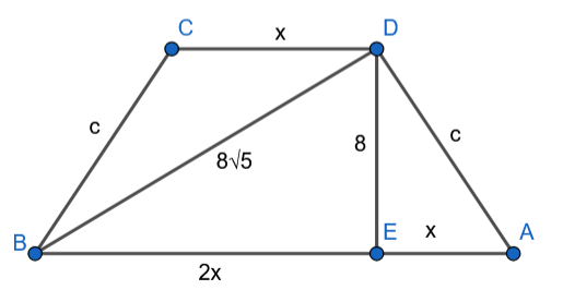 Dwukrotnie skorzystaj z twierdzenia Pitagorasa, aby wyznaczyć długość krawędzi podstawy i ramię trapezu. Następnie oblicz jego pole i obwód.