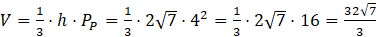 Oblicz pole podstawy ostrosłupa i jego objętość.