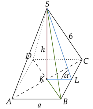 Zauważ, że trójkąt KBS jest prostokątny. Skorzystaj z twierdzenia Pitagorasa, aby obliczyć długość krawędzi podstawy ostrosłupa.