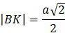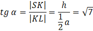 Zauważ, że długość odcinka KL to połowa długości krawędzi podstawy. A długość odcinka BK to połowa długości przekątnej podstawy.