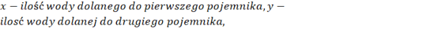 W tym zadaniu musisz podać ilość wody, którą dolano do pierwszego i drugiego pudełka, jeżeli łącznie dolano 14 kg wody. Wiadomo, że w pierwszym pojemniku znajdowało się 3 kg solanki 5%, a w drugim 5 kg solanki 8%. Po dolaniu wody stężenia w obu pojemnikach były takie same.