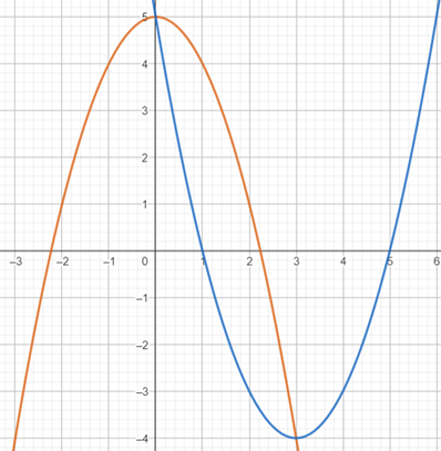 . Wierzchołek szukanej paraboli ma te same współrzędne co punkt przecinający oś OY, przez który przechodzi podana funkcja, a wierzchołek podanej funkcji jest punktem, przez który przechodzi szukana parabola.