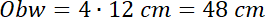 dłuższy. Prostokąt ma dwie pary boków równej długości, więc wzór na jego obwód to