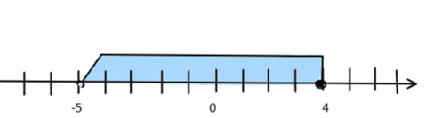 Przedział przedstawiony w tym podpunkcie mówi nam, że na osi należy zaznaczyć przedział zaczynający się w - 5 oraz kończący się w 4. Można zapisać go w postaci nierówności jako