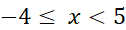 Przedział przedstawiony w tym podpunkcie mówi nam, że na osi należy zaznaczyć przedział zaczynający się w - 4 oraz kończący się w 5. Można zapisać go w postaci nierówności jako